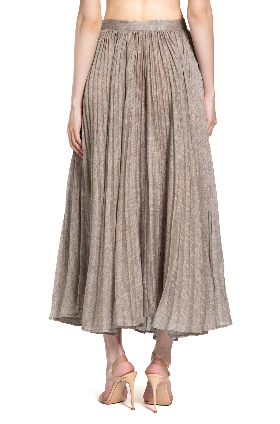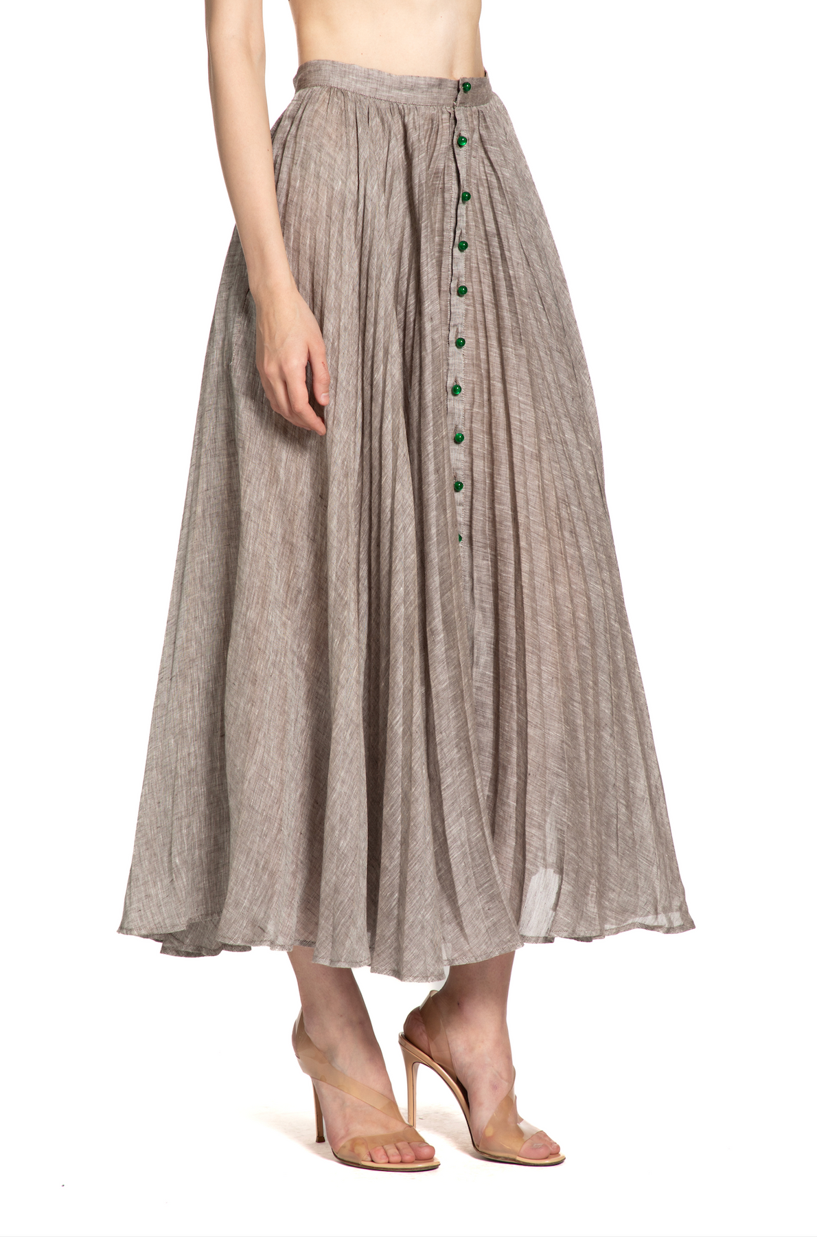 Grey Linen Maxi Wide Cut Pleated Skirt