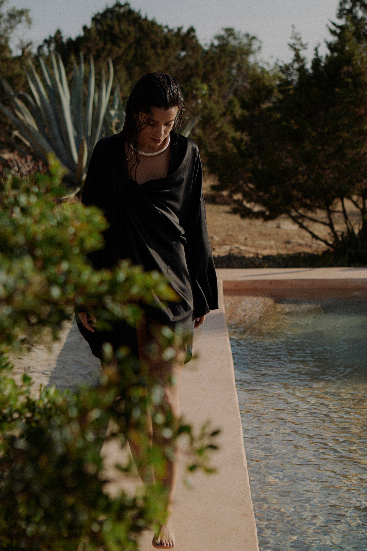 Indulge in the ultimate luxury with the Silk Lounge Robe in Black. Crafted from the finest silk, this robe exudes timeless sophistication with its rich, deep hue and subtle sheen. Its relaxed, flowing silhouette drapes effortlessly over your frame, offering a perfect balance of comfort and elegance. Whether you're wrapping yourself in it after a refreshing dip in the pool or emerging from a revitalizing spa experience, this robe elevates your moments of relaxation, enveloping you in quiet, refined luxury.