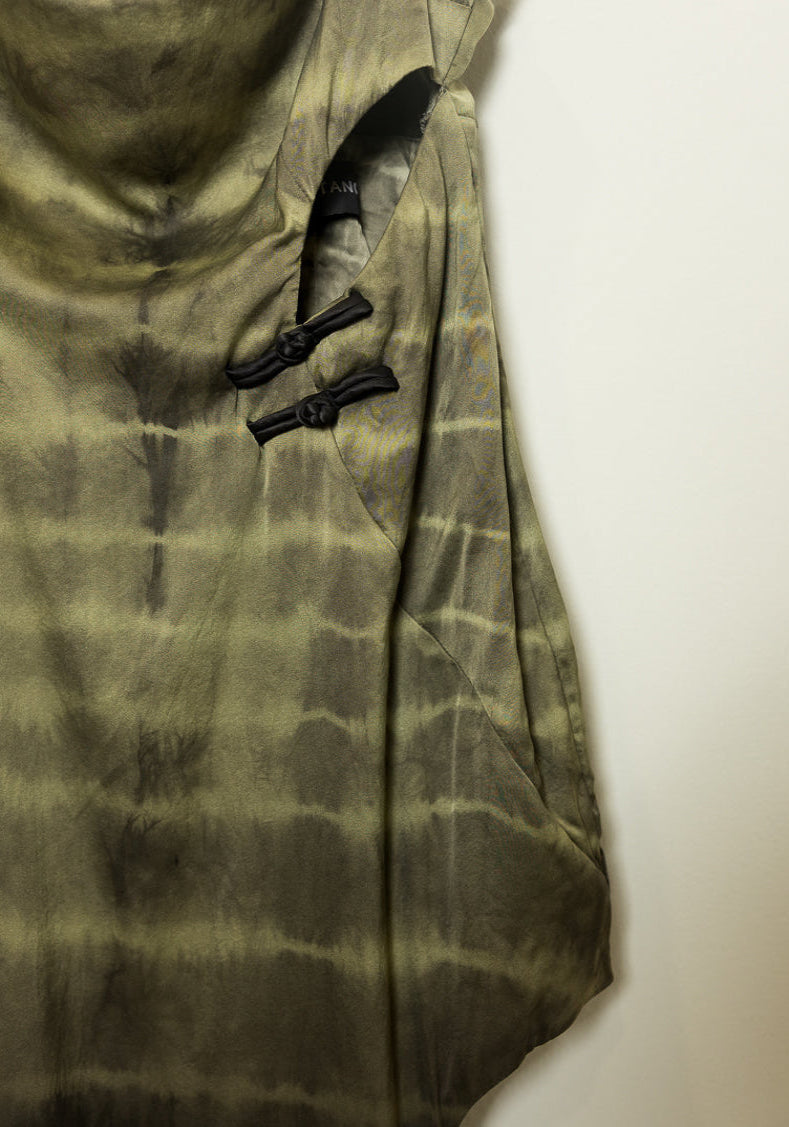 Progettato per avere una vestibilità che esalta tutti i tipi di corporatura fisica, questo vestito di Lisa Von Tang drappeggia dalla spalla ai fianchi, dando una silhouette snella e fluida. Il tessuto cupro contiene stretch, è facile da lavare, non è trattato chimicamente ed è biodegradabile. Un abito estremamente comodo da indossare per le giornate di relax con le pantofole o vestito con una cintura obi e tacchi.